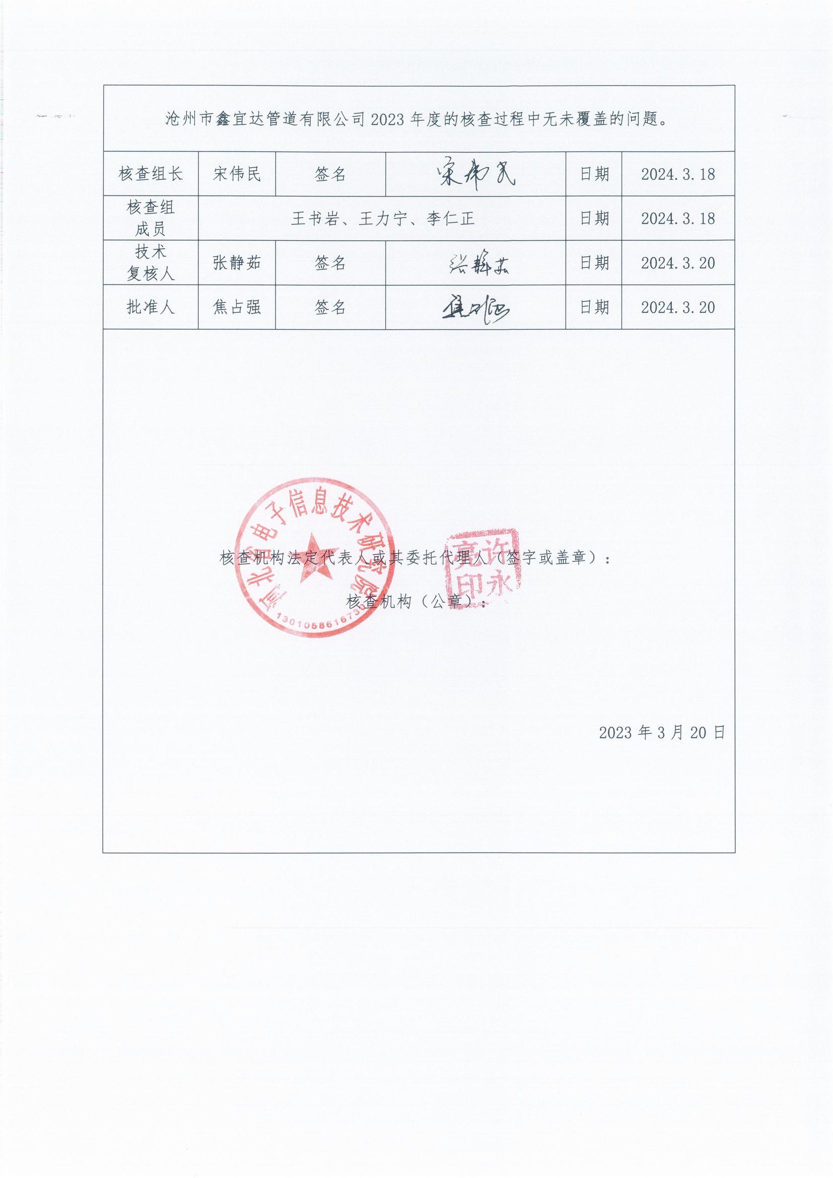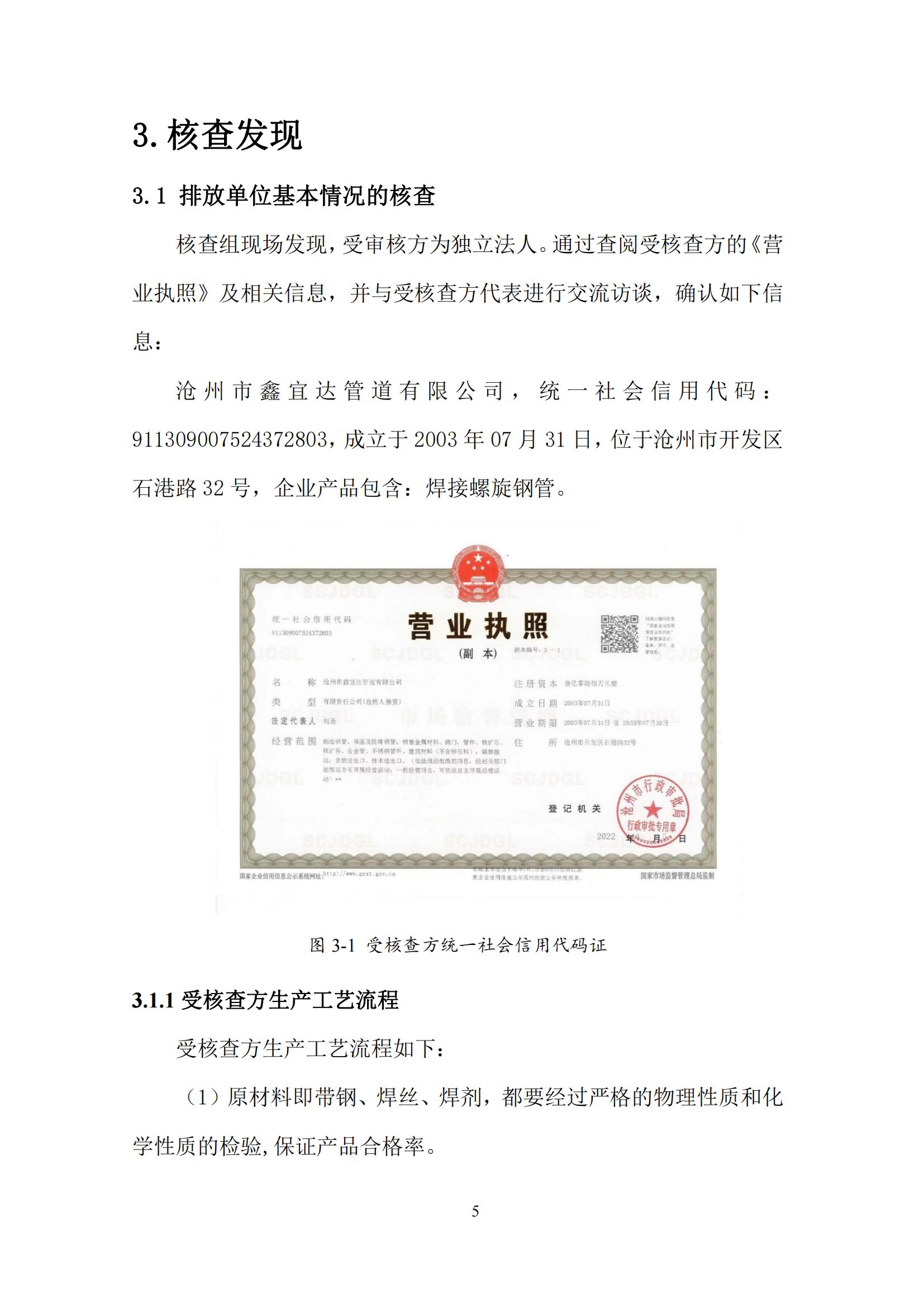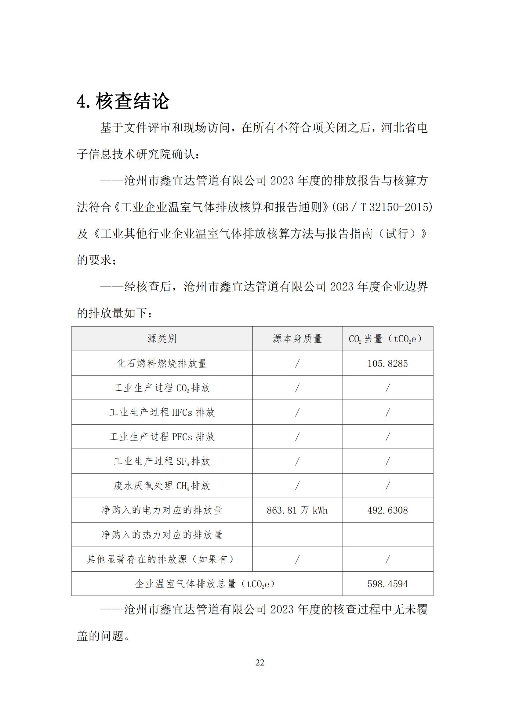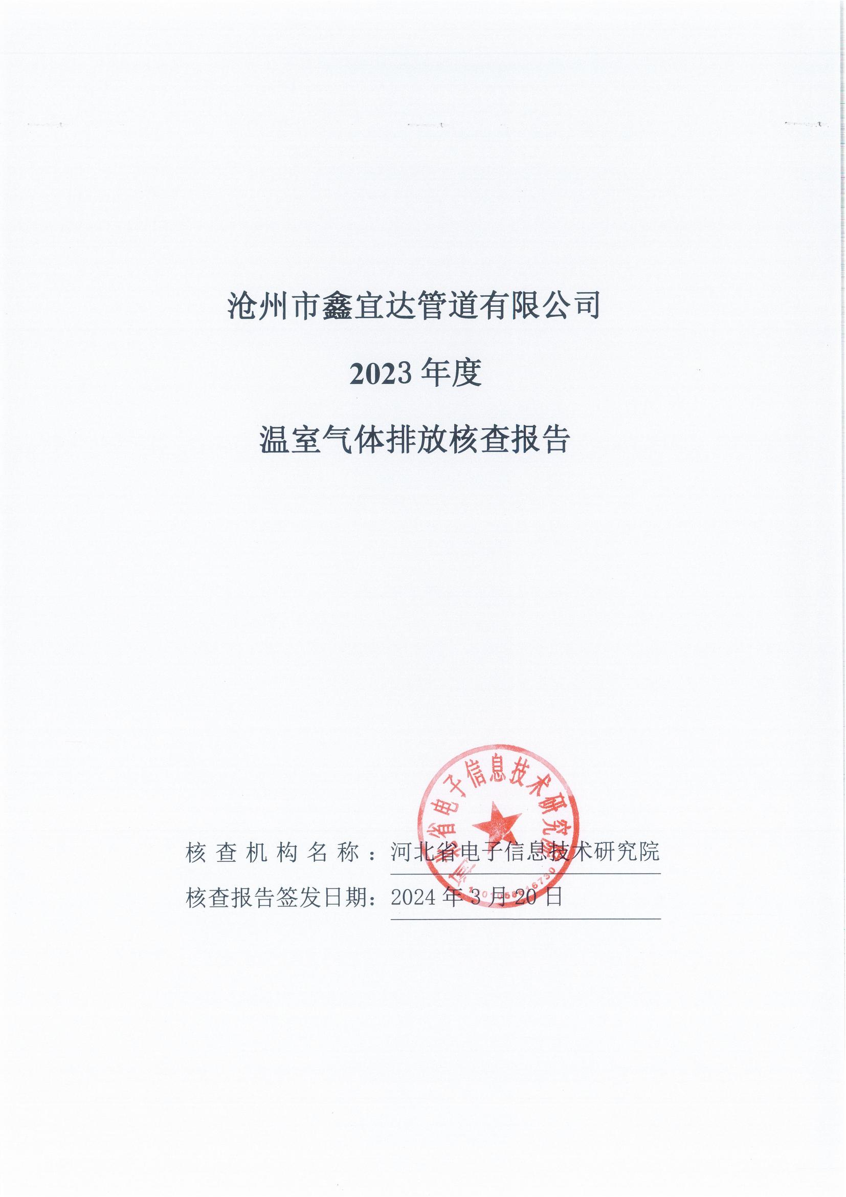 滄州市鑫宜達管道有限公司2023年度溫室氣體排放核查報告